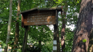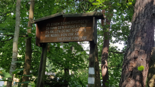 Gegen 10.00 Uhr führte uns der Theodor-Fontane-Weg direkt zum rund drei Kilometer langen Wald-Poesie-Pfad, der nach Woltersdorf führt. Die dort benannten Lyriker/innen schrieben in Stilen der Romantik bis hin zum Expressionismus. Diese Wahrnehmungen der Natur sollten auch von uns, wie von den Dichtern/innen der Jahre zuvor, in Form eines Gedichts aufgefasst und verarbeitet werden. Dabei sollte sich auf eine ausgewählte literarische Epoche bezogen werden. Es bestand die Auswahl zwischen der Aufklärung, der Empfindsamkeit, des Sturm und Drang sowie der Moderne.